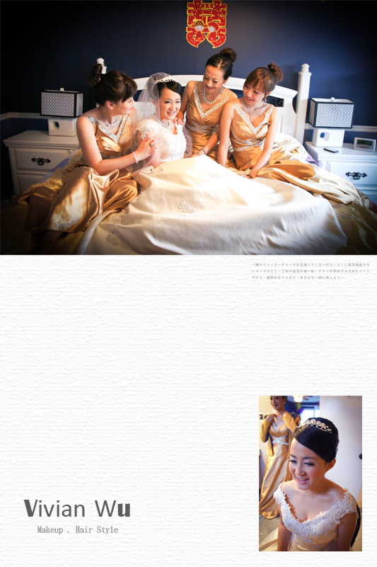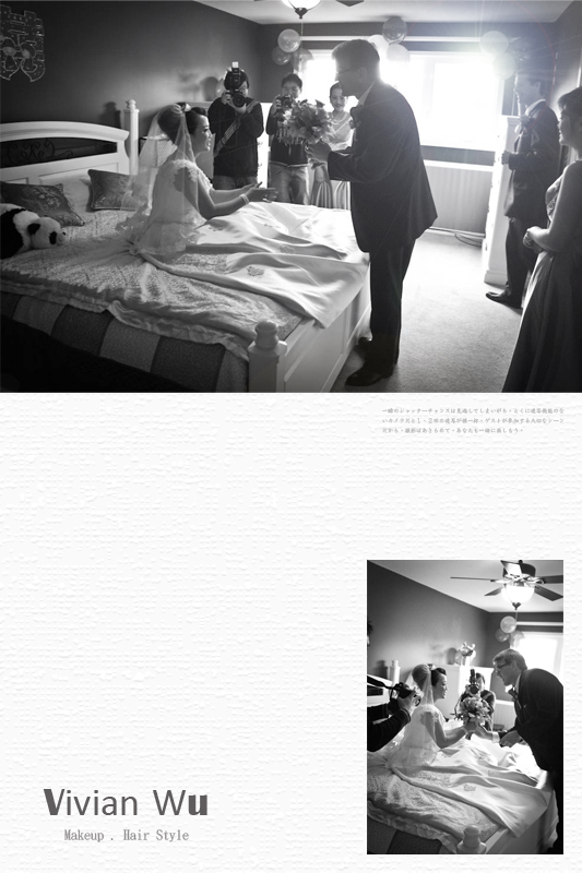 發佈於 25 1 月, 2012 作者: vivianbob1123Lily One Style Wedding in Oakville Lily 來自甘肅的女生 來加拿大工作…定居… 後來嫁給這位加拿大籍的老公 兩個不同文化背景的人~卻非常有緣份的相遇至相戀 希望她們的婚姻與愛情可以長長久久 甜甜蜜蜜喔~^^ —幕後花敘— Lily的頭髮特別短~又有自然卷 在處理髮型上跟一般新娘不一樣 造型裡還使用兩頂假髮才做出這樣的效果喔~!
