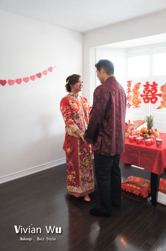 在後面新娘房我幫忙新娘穿上傳統的服式與頭飾