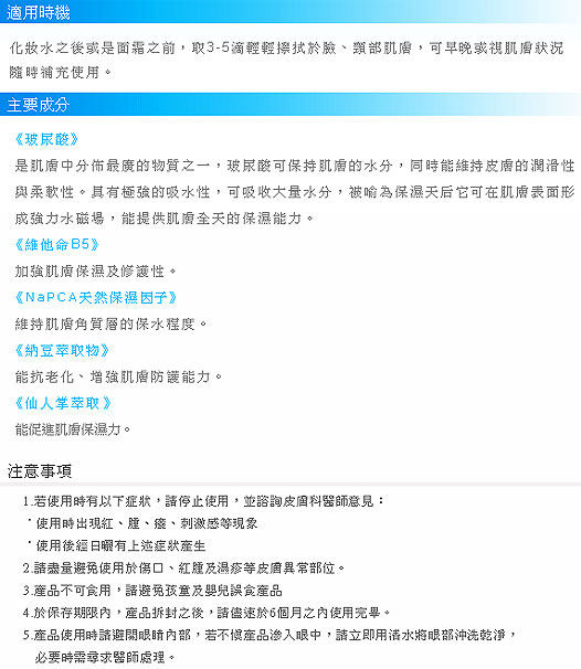但用完沒多久就會有點緊繃的感覺~那是因為玻尿酸精華液有強大的吸水效果正常現像喔!!!~
